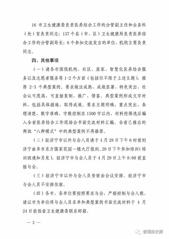 2019年全省醫(yī)養(yǎng)結(jié)合示范創(chuàng)建推進會暨醫(yī)養(yǎng)結(jié)合工作現(xiàn)場會2019年4月29日上午8時左右,山東普瑞森醫(yī)療設(shè)備股份有限公司各部門負責人在王總的帶領(lǐng)下參加在曲阜市舉行的“2019年全省醫(yī)養(yǎng)結(jié)合示范創(chuàng)建推進會暨醫(yī)養(yǎng)結(jié)合工作現(xiàn)場會”,并陪同省衛(wèi)健委領(lǐng)導參觀小雪社區(qū)衛(wèi)生服務中心醫(yī)養(yǎng)結(jié)合示范點。