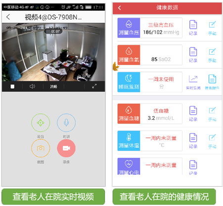 家屬可通過智能化管理系統(tǒng)清晰明了的看到老人每天的身體情況、護(hù)理情況、日;顒印⒏黜(xiàng)消費(fèi)及可用余額;還能查看老人視頻、照片、進(jìn)行在線充值繳費(fèi)。